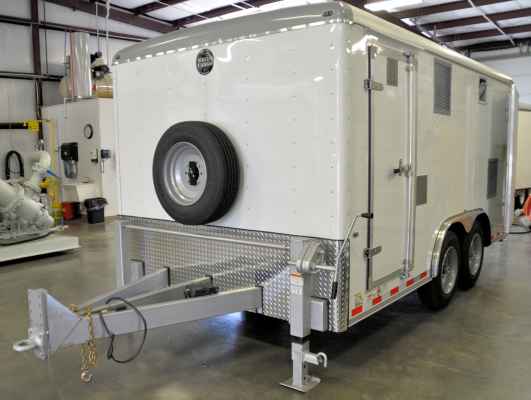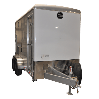 All cargo trailers are specifically engineered to accommodate equipment load, weight distribution, to provide optimum towing conditions. Cargo trailer weight capacities (GVRW) range from 4,000 to 16,000 Lbs. SESCO will provide the cargo trailer size and weight capacity options available for the system being quoted.